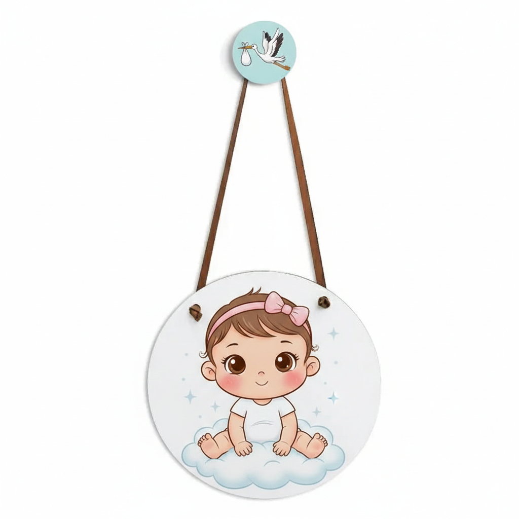 Plaquinha de Porta Maternidade de MDF Premium - 20cm de Diâmetro.